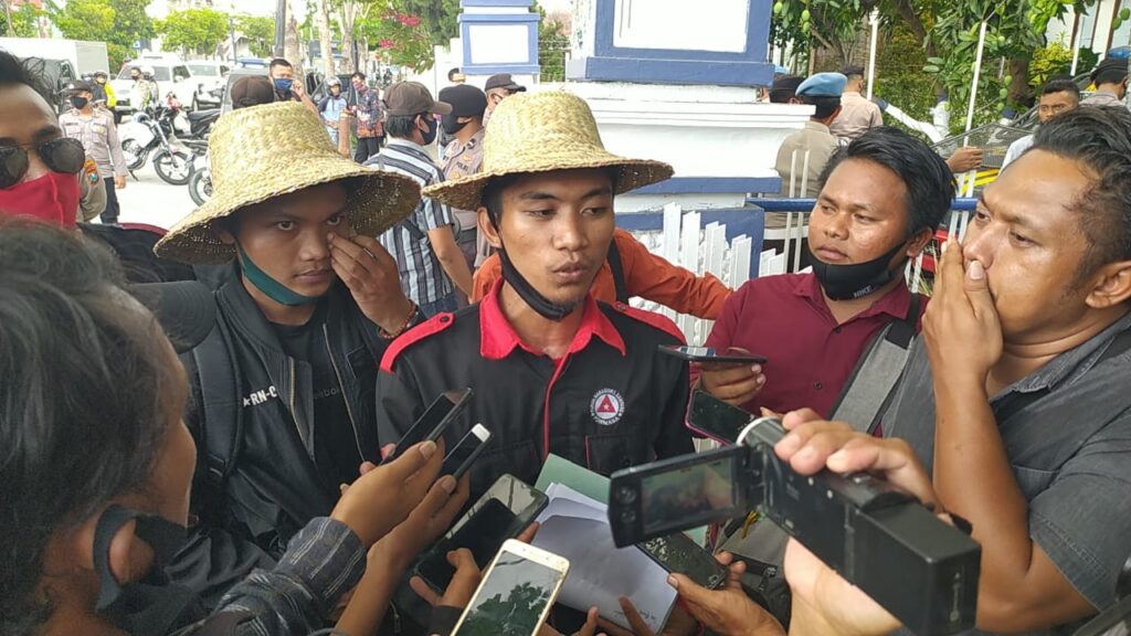 Pupuk langka dan mahal, puluhan anggota Forum Mahasiswa Sampang (Formasa) menuntut pertanggung jawaban Dinas Pertanian Sampang, Madura, Jawa Timur, Kamis (12/11/20).